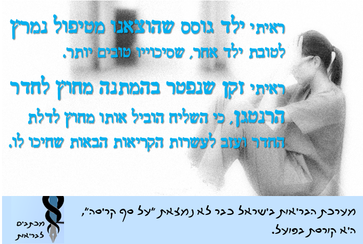 ראיתי מטופלים שמחכים ימים ליועצים, שבועות לבדיקות ופרוצדורות פשוטות. ראיתי איך בזמן ההמתנה החלשים שבהם נדבקים בזיהומים ונפטרים.