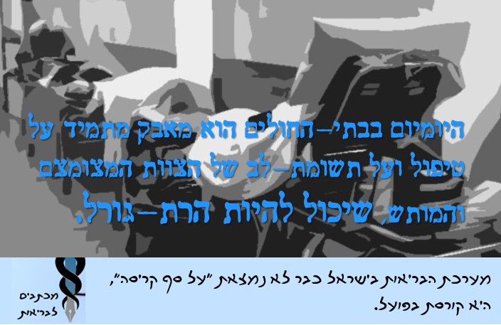 מי שלא היה שם לא יוכל לדמיין איך זה כשחולה מחכה שעות לכך שיחליפו לו חיתול. איך זה כשחולה ישן עם ידיים קשורות כי אין מי שישגיח שלא ימשוך צינור בשנתו. איך זה כשחולה מחכה למדידת חום ואקמול בלילה והאחות עמוסה. איך זה כשרופא מתבלבל בין חולים, או כשהוא טועה במינון של תרופה רעילה. איך זה כשאין מקום במחלקה המקצועית והחולה מועבר למחלקה פנימית כללית. איך זה כשהאחות לא מחליפה חלוק חד-פעמי ומעבירה זיהומים בין חולים. איך זה כשחולה ישן במסדרון שכל רגע עוברים בו ומעירים אותו. וזה רק חלק קטן מהרשימה. היומיום בבתי-החולים הוא מאבק מתמיד על טיפול ועל תשומת-לב של הצוות המצומצם והמותש, שיכול להיות הרת-גורל.