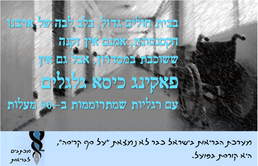 מכירים את זה שבבית חולים גדול, בלב לבה של ארצנו הקטנטונת, אמנם אין זקנה ששוכבת במסדרון, אבל גם אין פאקינג כיסא גלגלים עם רגליות שמתרוממות ב-90 מעלות?