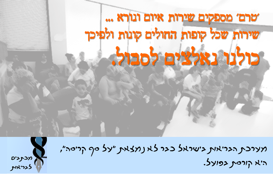 בסופה של החוויה הזו ביקשנו נורא יפה מהתינוק שבפעם הבאה שהוא פותח את הראש שיעשה את זה בבקשה חצי שעה קודם כשהמרפאה של קופת חולים עדיין פתוחה. גם לכם אני מציעה באופן כללי להיות בריאים, לא בריא להיות חולים או פצועים במדינה הזו, יש לנו מלחמות לממן ועם כל הכבוד, המלחמה קודמת לבריאות שלכם.