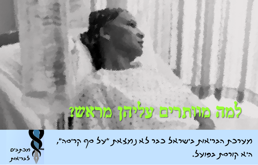 אחרי תחנונים רבים והסברים של הרופא, הם הסכימו לממן את הסריקה הפעם. לשמחתנו נמצא שהיא נקייה מגידולים. אבל אין לי מושג מה יקרה בפעם הבאה, כשנצטרך שוב להיאבק על הבדיקה החשובה הזו. למה אי אפשר לתת לחולות סרטן את הביטחון שיעקבו אחרי המצב שלהן כדי לוודא שהמחלה לא חזרה? למה מוותרים עליהן מראש?"