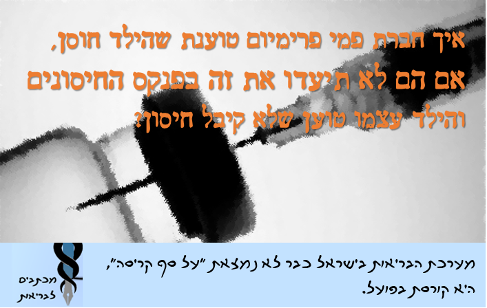 היות שבני לא קיבל את החיסון השני, במצב כזה אין לנו ברירה אלא לקבל את החיסון באופן פרטי במשרד הבריאות, ובתשלום. איך חברת פמי פרימיום טוענת שהילד חוסן, אם הם לא תיעדו את זה בפנקס החיסונים והילד עצמו טוען שלא קיבל חיסון?