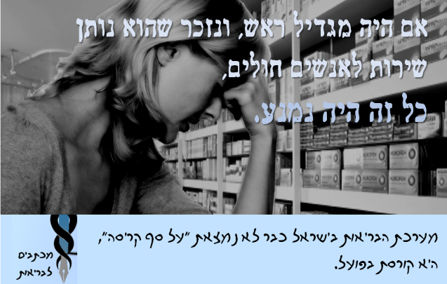 אני אתעלם לרגע מהעובדה שהוא טירטר אותי. אתעלם גם מהעובדה שהוא צעק עליי ובכלל התייחס אלי כאילו הוא עושה לי טובה. אני גם לא אציין את רמת התסכול שזה יצר אצלי ואת 3 השעות שבזבזתי, רק בשביל לרכוש תרופה.