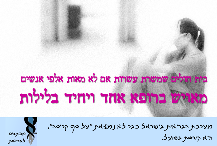 מדאיג אותי שבית חולים שמשרת עשרות אם לא מאות אלפי אנשים מאויש ברופא אחד ויחיד בלילות. שאלוהים ישמור על מי שמגיע במצב אנוש אם הרופא במקרה תקוע בשירותים ביציאה ארוכה במיוחד…"