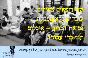 "שני רופאים צעירים, עובדים ללא הפסקה. גם את הכריך – אוכלים תוך כדי עבודה"