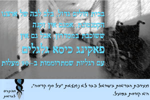 בבית חולים גדול, בלב לבה של ארצנו הקטנטונת, אמנם אין זקנה ששוכבת במסדרון, אבל גם אין פאקינג כיסא גלגלים עם רגליות שמתרוממות ב-90 מעלות?